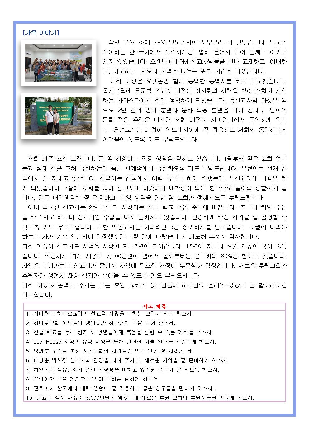 저희 가정의 2월 정기소식을 드립니다. 감사합니다.