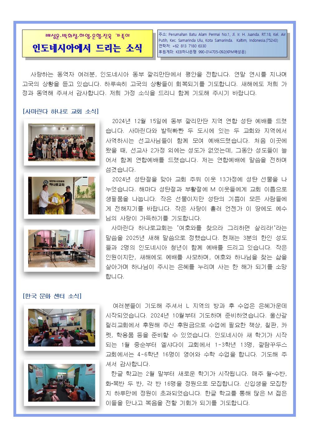 인도네시아 배성운 박희정 선교사 소식드립니다.