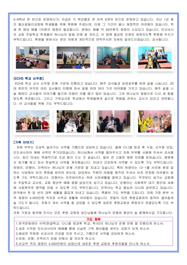 인도네시아 배성운 박희정 선교사 소식드립니다.